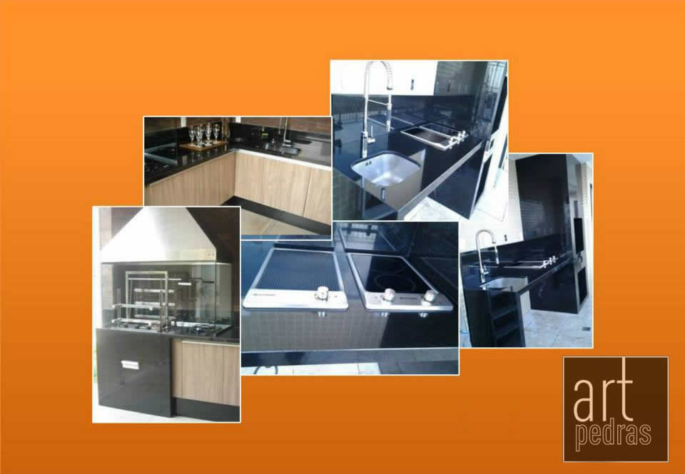 Supernanoglass, Silestone vermelho stellar e Granito preto.